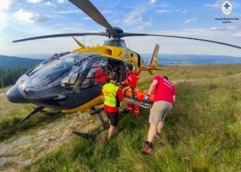 Starszy mężczyzna doznał poparzeń w wyniku pożaru traw. Na miejsce wezwano śmigłowiec Lotniczego Pogotowia Ratunkowego.