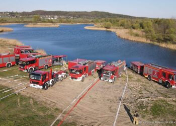Kilkanaście zastępów straży pożarnej gasi pożar hali magazynowej w miejscowości Łomna w powiecie nowodworskim.