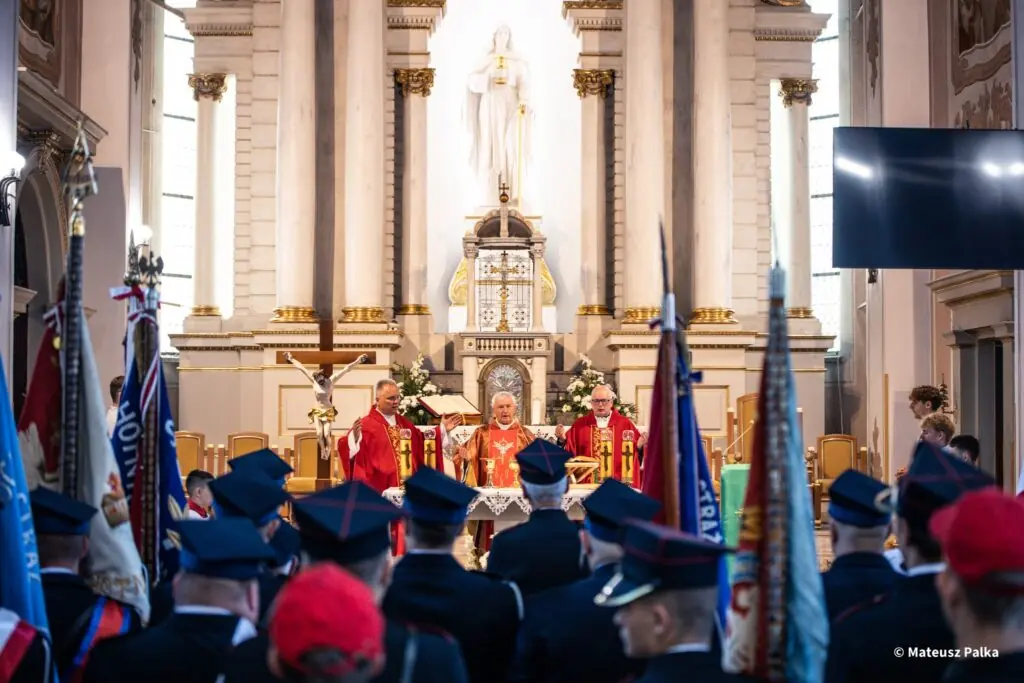 Obchody rozpoczęła Msza Święta w kościele pw. św. Barbary. Nabożeństwo w intencji strażaków – tych, którzy pełnią służbę dzisiaj, i tych, którzy zapisali się w stuletniej historii jednostki – miało niezwykle uroczysty charakter. Po modlitwie strażacy wraz z pocztami sztandarowymi i wozami bojowymi wyruszyli w defiladzie ulicami miasta. Przemarsz w pełnym umundurowaniu, przy dźwiękach orkiestry i sygnałach pojazdów, wzbudził ogromne zainteresowanie mieszkańców, którzy gromadzili się wzdłuż trasy, bijąc brawo i pozdrawiając druhów.