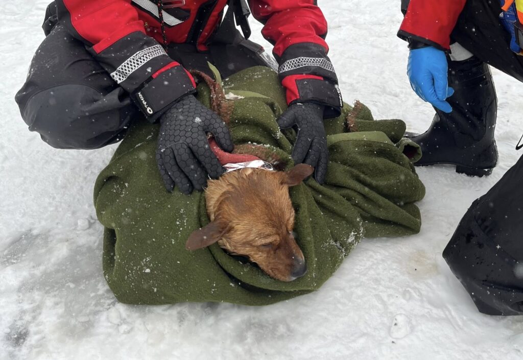 Sukcesem zakończyła się wczorajsza akcja ratowania tonącego psa, pod którym załamał się lód.