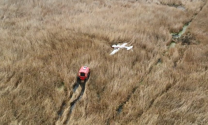 W sobotę na miejsce zadysponowano wielozadaniowy pojazd SHERP, który na co dzień znajduje się w Bazie Szkolenia Poligonowego i Innowacji Ratownictwa Akademii Pożarniczej w Nowym Dworze Mazowieckim i drona z JRG 6 Warszawa. Zostały one wykorzystane do oględzin samolotu i miejsca zdarzenia.