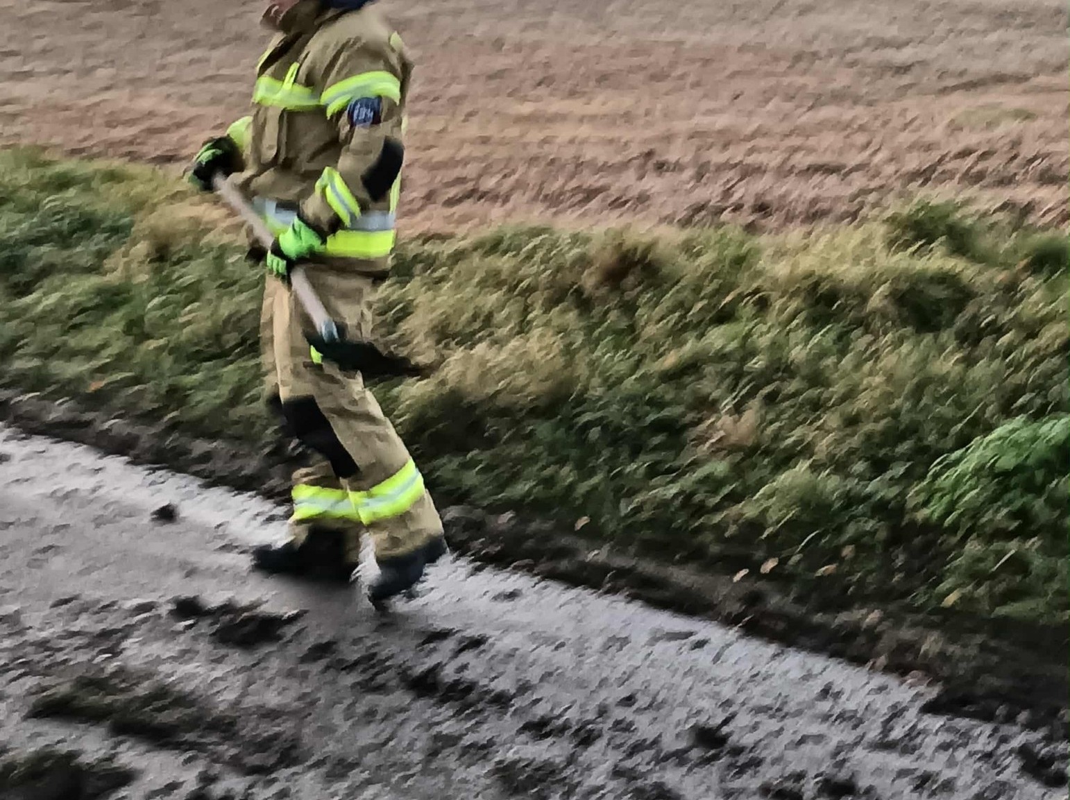 Zgłoszenie o ‘zdarzeniu’ straż pożarna otrzymała w środę po godzinie piętnastej. Odcinek drogi powiatowej nr 1605R był zanieczyszczony błotem co stwarzało realne zagrożenie dla kierowców.