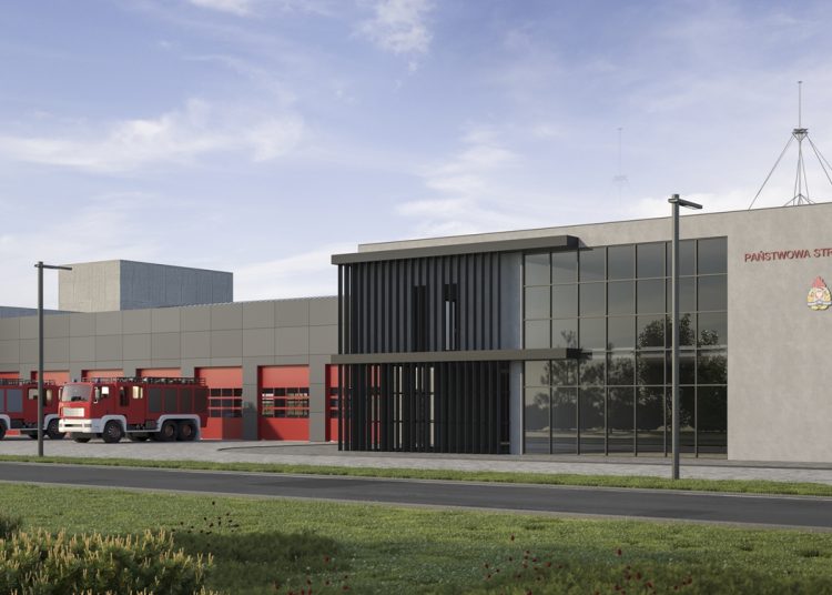 Będzie to budynek posiadający halę garażową, w której znajdzie się czternaście stanowisk, garaż przeznaczony do mycia pojazdów i sprzęt oraz dwie części.
