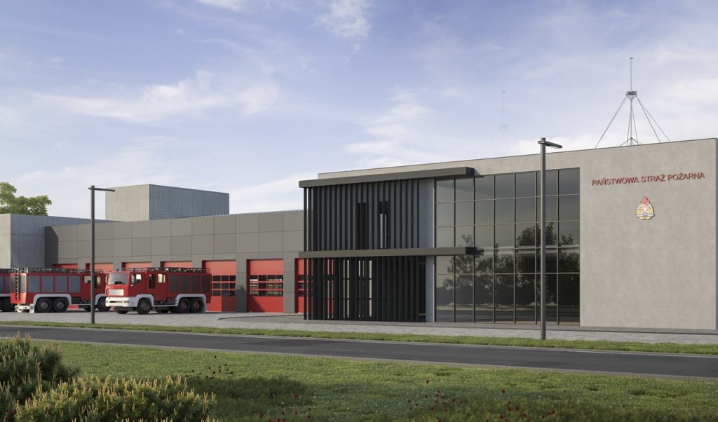 Będzie to budynek posiadający halę garażową, w której znajdzie się czternaście stanowisk, garaż przeznaczony do mycia pojazdów i sprzęt oraz dwie części.