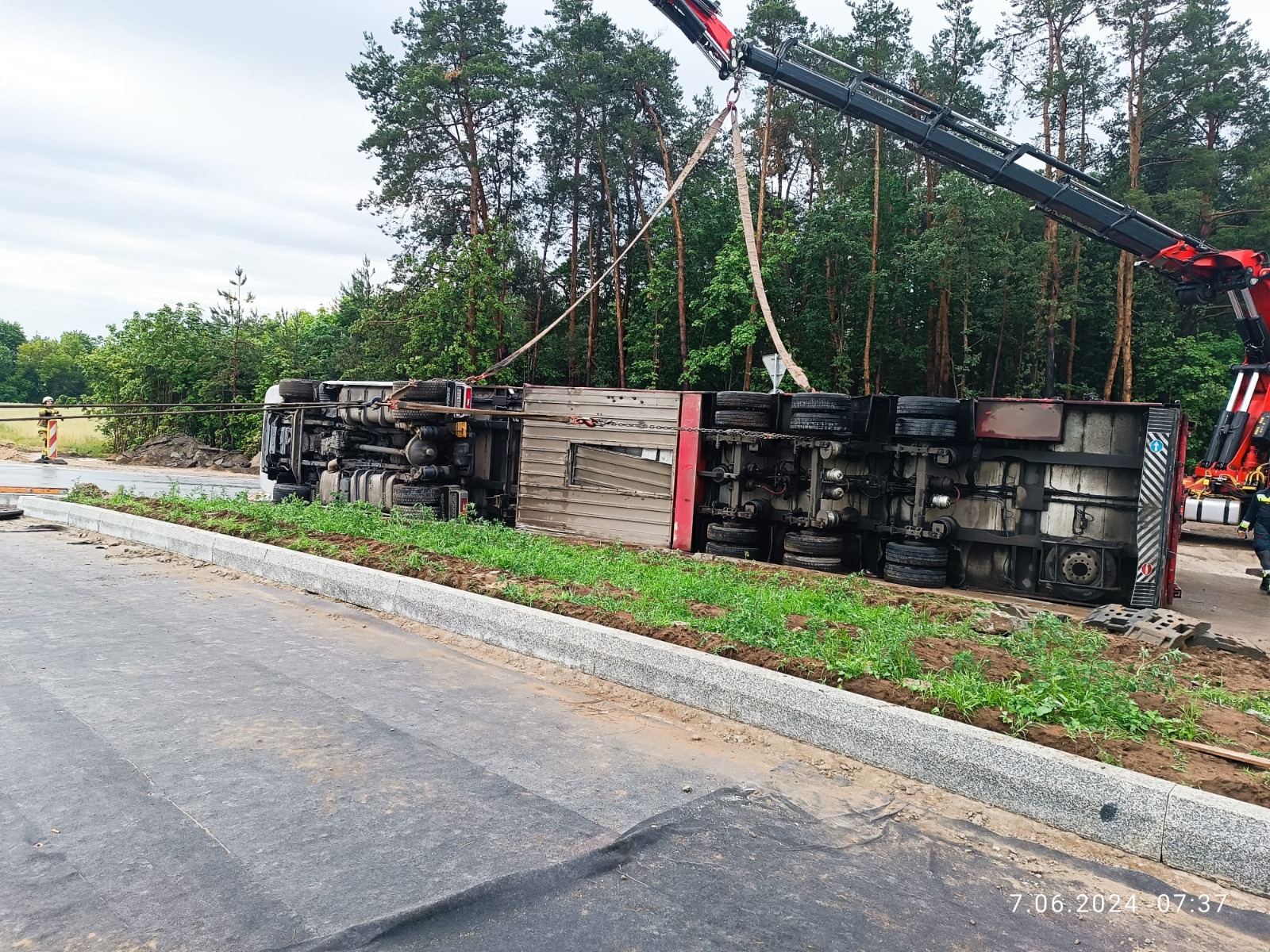 Do działań zadysponowano Specjalistyczną Grupę Ratownictwa Technicznego WARSZAWA-8, która przy pomocy wyciągarek, rotatora i żurawia postawiła zestaw na koła.