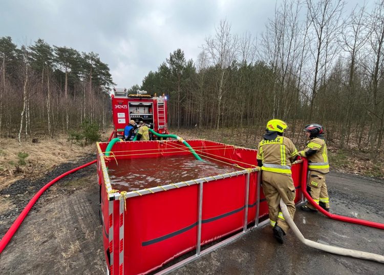 Strażacy z JRG 2 w Zielonej Górze i druhowie z jednostek OSP wchodzących w skład Kompanii Gaśniczej WOO „Zielona Góra” ćwiczyli podawanie wody na duże odległości i doskonalili umiejętności z zakresu gaszenia pożaru lasu.