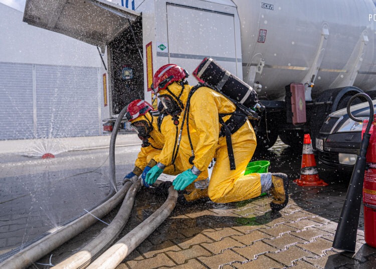 Ćwiczenia zorganizowano na terenie firmy zajmującej się produkcją styropianu w ramach sprawdzenia powiatowego planu ratowniczego, który został opracowany dla zakładu.