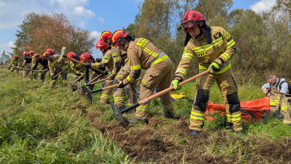 Grupa małopolskich strażaków wzięła udział w ćwiczeniach z zakresu gaszenia pożarów na terenach niezurbanizowanych.