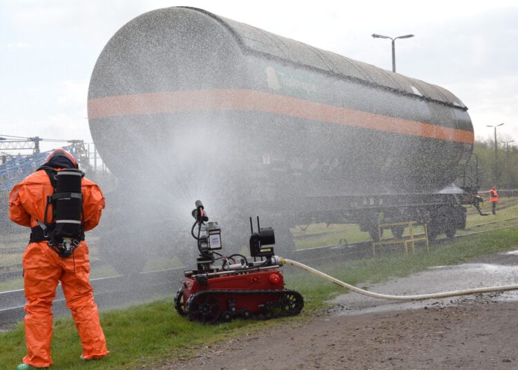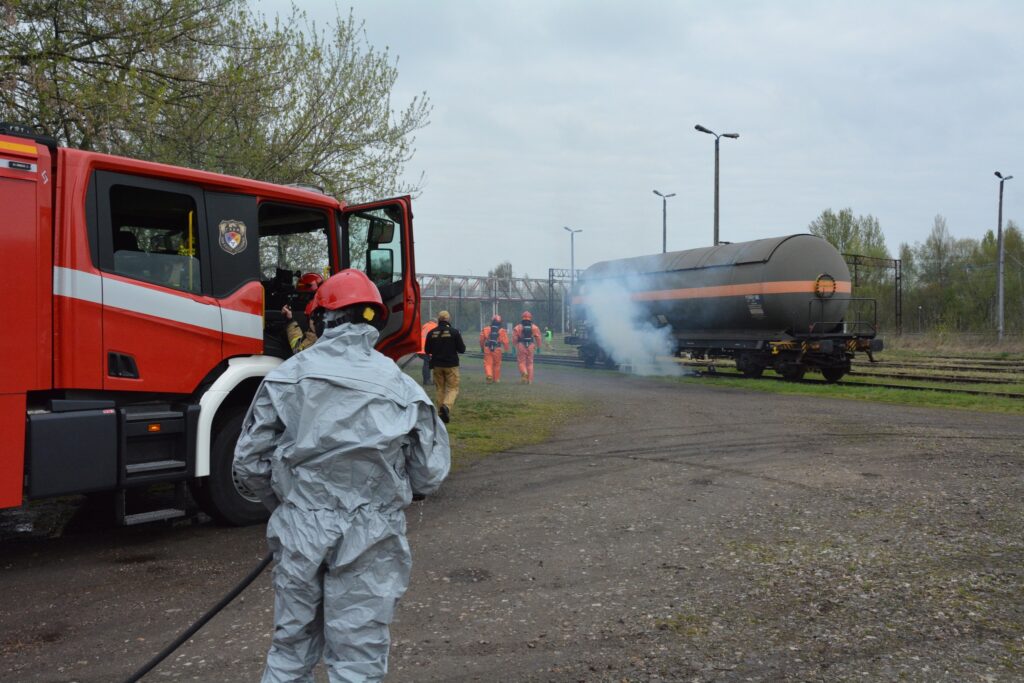 sprawdzenie obiegu informacji i procesu podejmowania decyzji w systemie zarządzania kryzysowego, zabezpieczenie miejsca zdarzenia oraz wyłączenie ruchu kolejowego, prowadzenie działań ratownictwa chemicznego, w tym identyfikację substancji i likwidację wycieku, wykorzystanie specjalistycznego sprzętu, w tym robota gaśniczego.