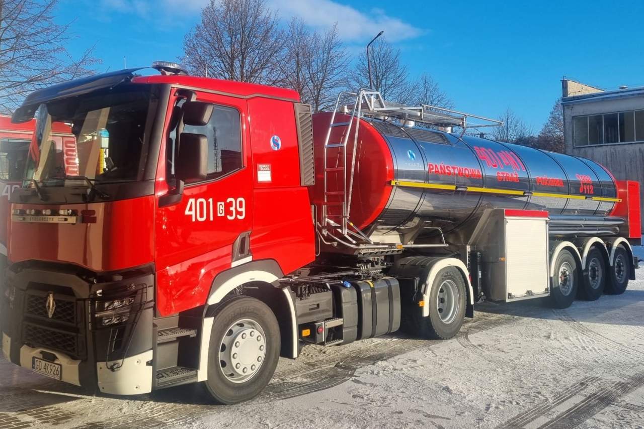 Do Jednostki Ratowniczo – Gaśniczej w Bytowie trafił nowy samochód gaśniczy – cysterna. To pierwszy tego typu pojazd w regionie.