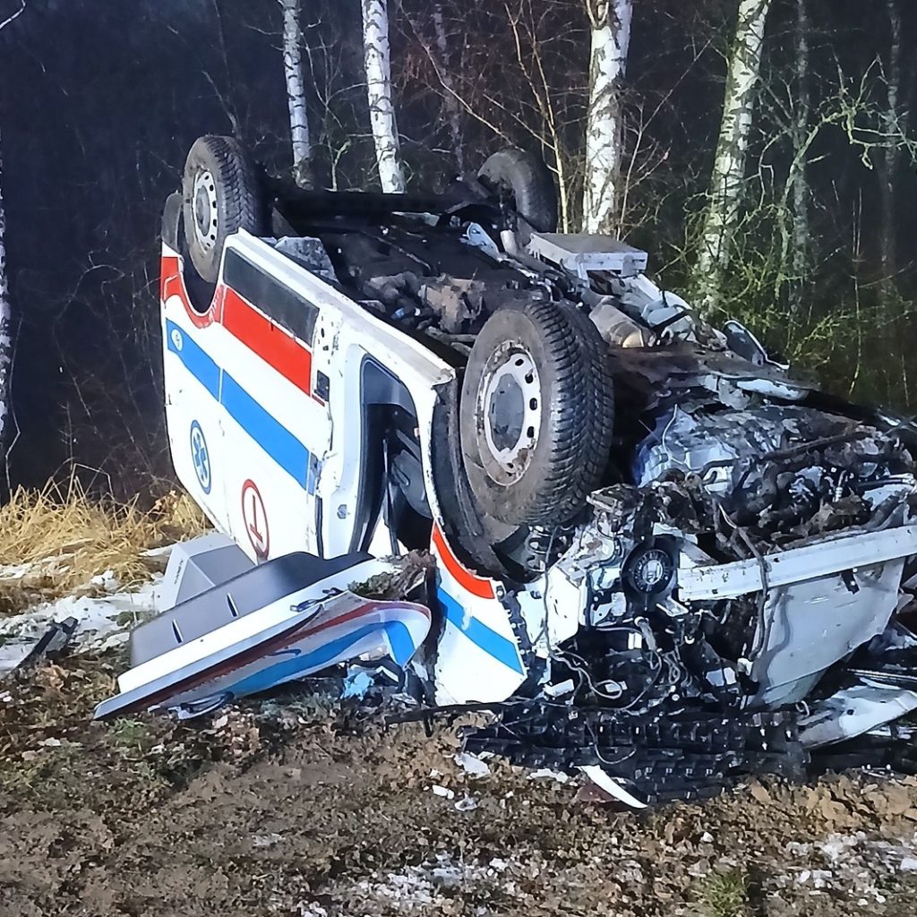 W środę po godzinie szesnastej doszło do zderzenia samochodu osobowego z karetką transportową, która w wyniku zderzenia wypadła z drogi i dachowała.