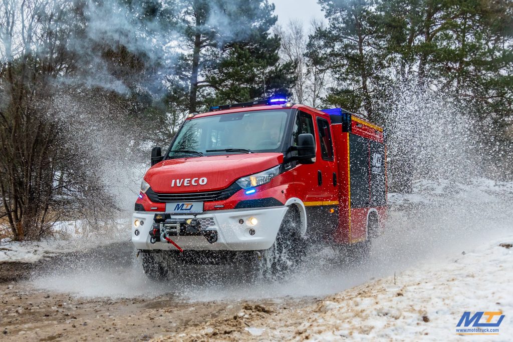 Nowy nabytek to Iveco Daily 4×4 z zabudową firmy Moto-Truck. Posiada on zbiornik wody o pojemności 1000 litrów, zbiornik środka pianotwórczego, autopompę A 10/10 MT, linię szybkiego natarcia, instalację zraszaczową, maszt oświetleniowy, wyciągarkę i sprzęt niezbędny podczas akcji.