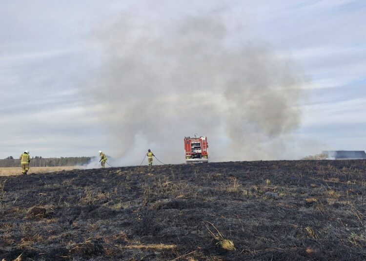 W piątkowe popołudnie strażacy z powiatu polickiego zostali zadysponowani do dużego pożaru traw.