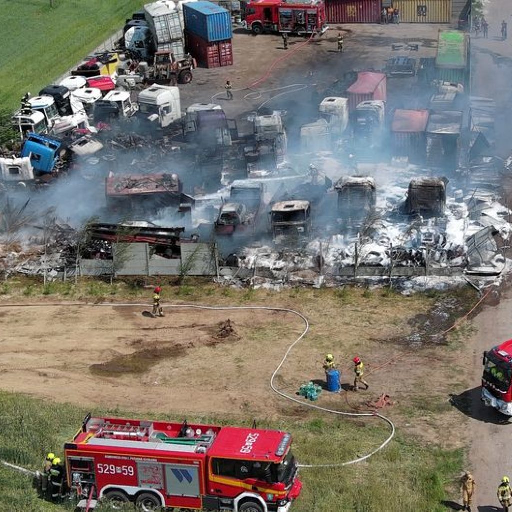 Dwanaście zastępów straży pożarnej gasiło pożar, który w piątek wybuchł na terenie firmy transportowej w Mławie.