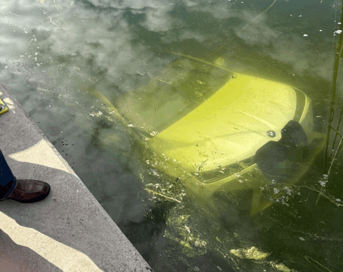 Elektryczny samochód osobowy znajdował się na rampie slipowej i w pewnym momencie stoczył się do wody. W pojeździe nikogo nie było.