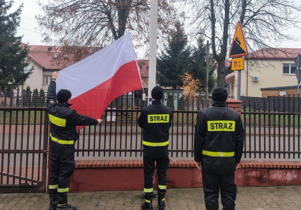 W 107. rocznicę odzyskania niepodległości w jednostkach organizacyjnych PSP odbyło się uroczyste podniesienie flagi państwowej na maszt.
