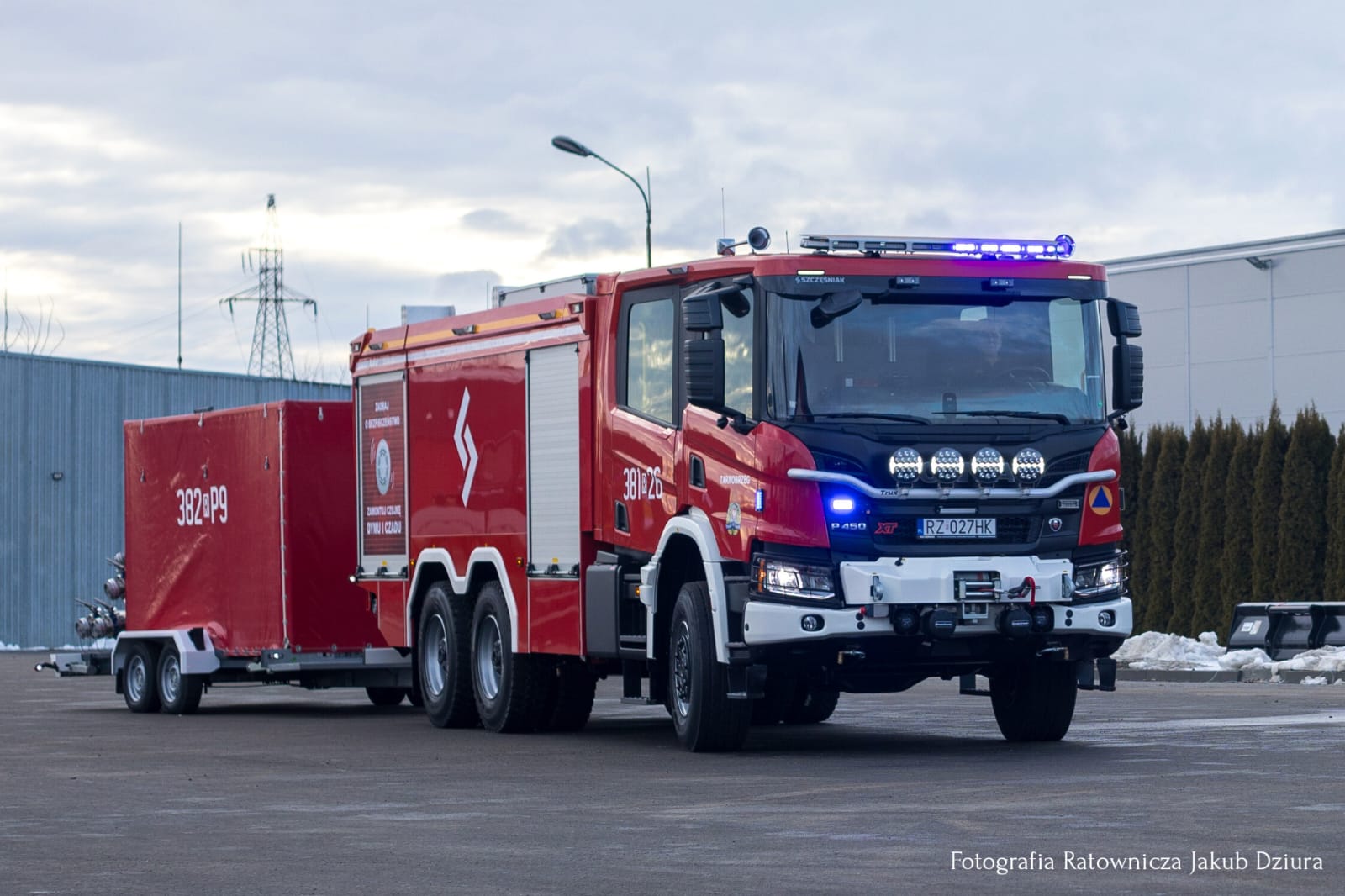 Nowy nabytek to warta blisko dwa miliony złotych trzyosiowa Scania P450 XT 6×6 z zabudową z linii EVO firmy Szczęśniak Pojazdy Specjalne, która wprowadza szereg istotnych zmian stylistycznych, w tym: smuklejsze, bardziej dynamiczne linie nadwozia, nowy projekt lamp i elementów oświetleniowych czy zintegrowane osłony.