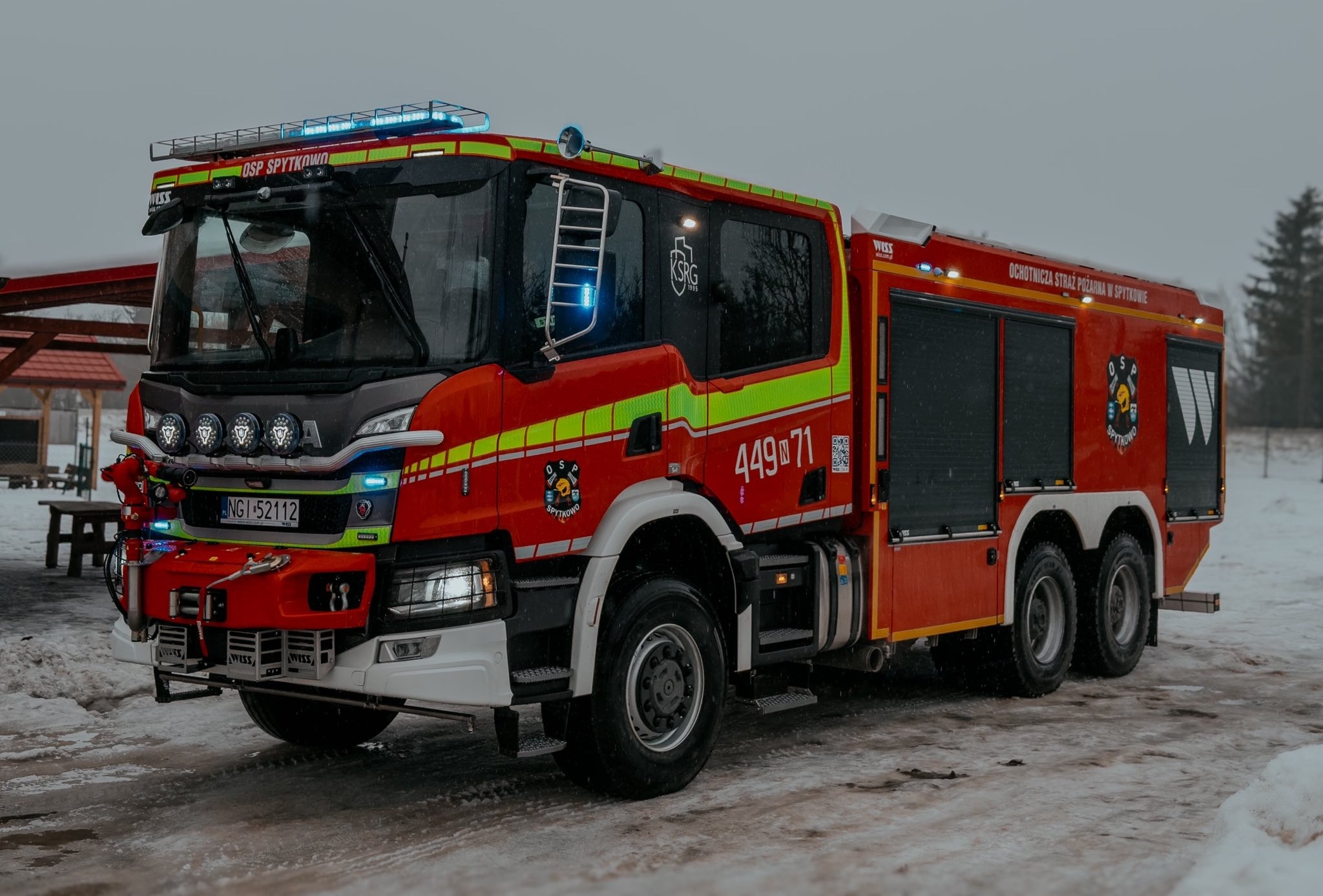 Jedyny taki samochód w powiecie giżyckim został zabudowany przez firmę WISS Samochody Specjalne na trzyosiowym podwoziu Scania P450 6×6.