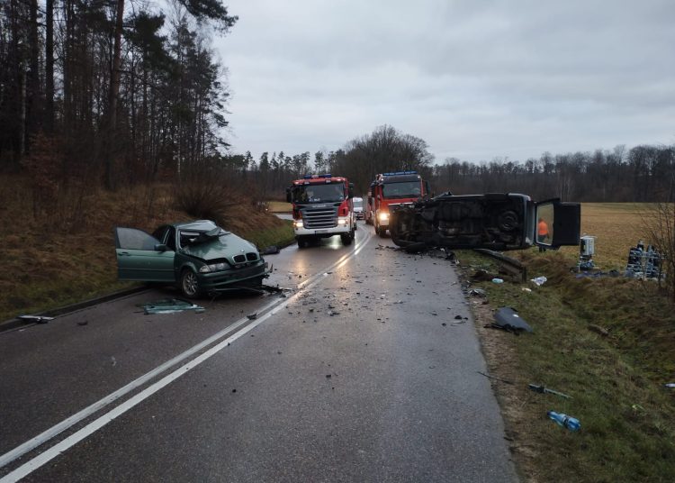 Dzisiaj przed godziną 7:00 rano doszło do groźnego w skutkach wypadku drogowego na DW212 w powiecie lęborskim. Na trasie Lębork – Cewice doszło do zderzenia dwóch samochodów osobowych, są osoby poszkodowane – takie informacje jakie spłynęły do Stanowiska Kierowania KP PSP w Lęborku. Na miejsce natychmiast zadysponowano dwa zastępy z Jednostki Ratowniczo – Gaśniczej w Lęborku oraz zastęp z OSP Łebunia.
