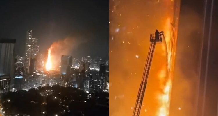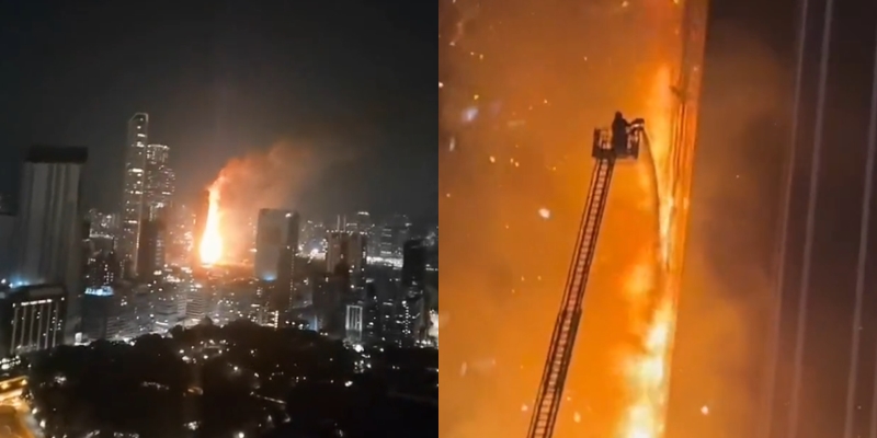 Ogień objął wyższe partie 42-piętrowego budynku, który jest w trakcie budowy. Doszło również do kilku mniejszych pożarów, które zostały wywołane przez spadające bambusowe elementy rusztowania.