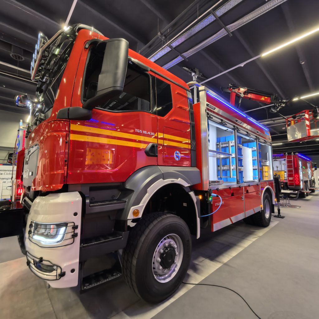 Podczas targów IFRE-EXPO firma Stolarczyk zaprezentowała szereg samochodów, w tym samochód ratownictwa technicznego klasy ciężkiej.