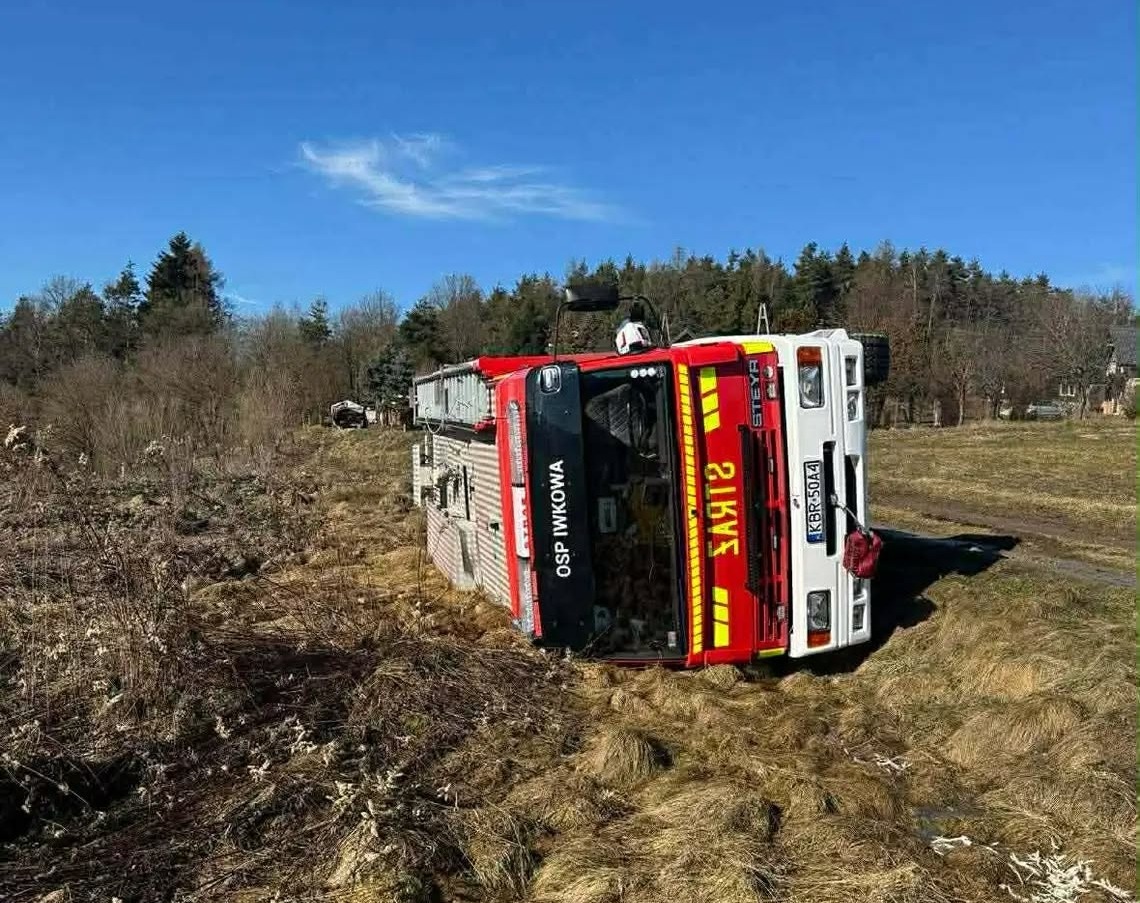 Dzisiaj przed południem w Iwkowej w województwie małopolskim doszło do zdarzenia z udziałem samochodu ratowniczo – gaśniczego.