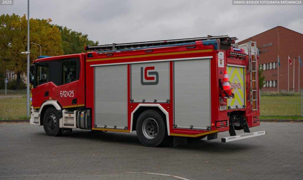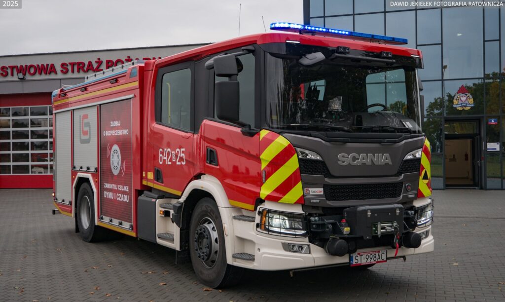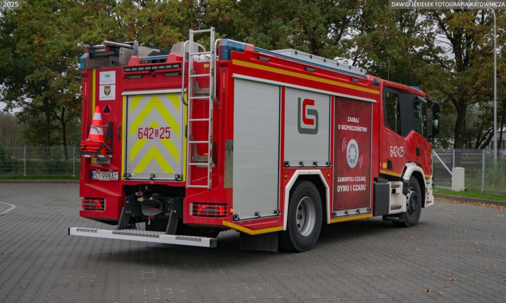 Strażacy otrzymali miejską Scanię P460 4×2, która dysponuje zbiornikami wody i środka pianotwórczego o pojemności 5000 i 500 litrów oraz autopompą o wydajności 3200 litrów na minutę. Do tego linia szybkiego natarcia, wyciągarka, maszt oświetleniowy, instalacja zraszaczową. Wyposażony jest w sprzęt w standardzie pierwszowyjazdowym.
