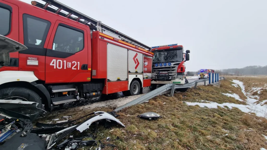 W trakcie dojazdu kierowca strażackiego wozu Renault – według policji – nie dostosował prędkości do warunków panujących na drodze i uderzył w stojącą karetkę i samochód osobowym. Później z tych samych przyczyn w tył GBA uderzyła ciężka Scania. Na szczęście nikomu nic się nie stało.
