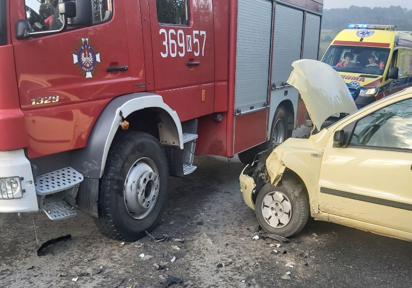 Gdy zastęp udawał się alarmowo do z zdarzenia w wóz bojowy z impetem uderzył samochód osobowy, którym kierowała kobieta. Według wstępnych ustaleń nie ustąpiła ona pierwszeństwa strażakom. W tym zdarzeniu poszkodowane zostało dziecko kobieto, któremu strażacy udzielili pomocy i przekazali ZRM.