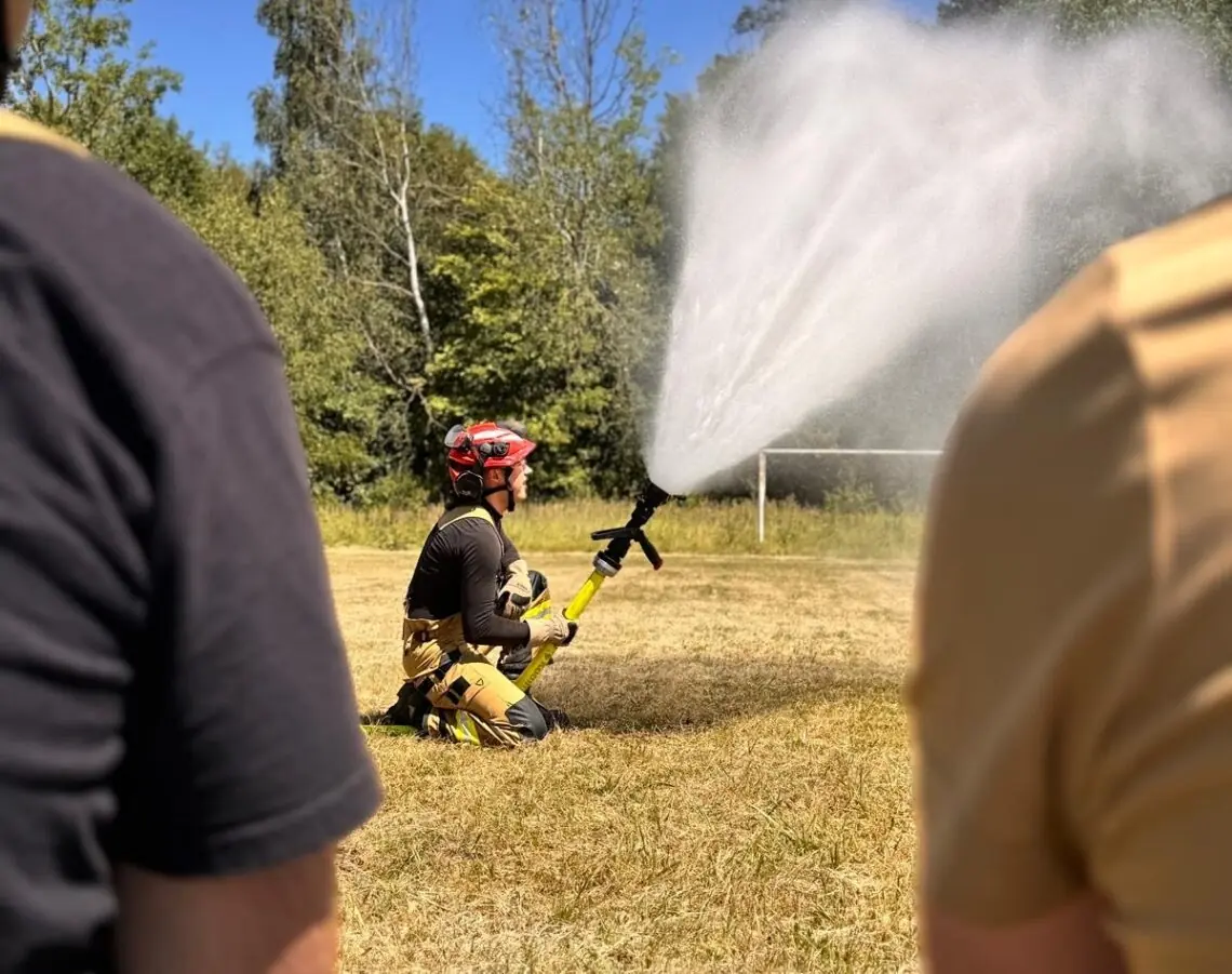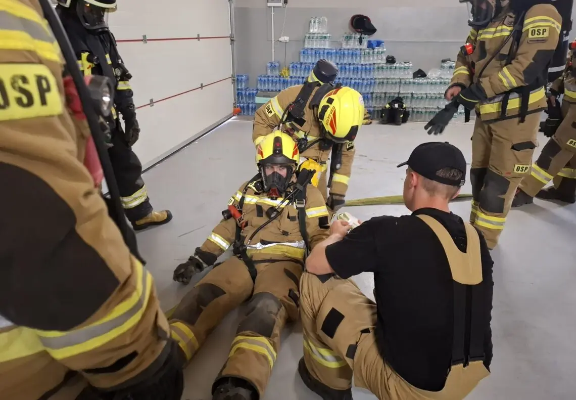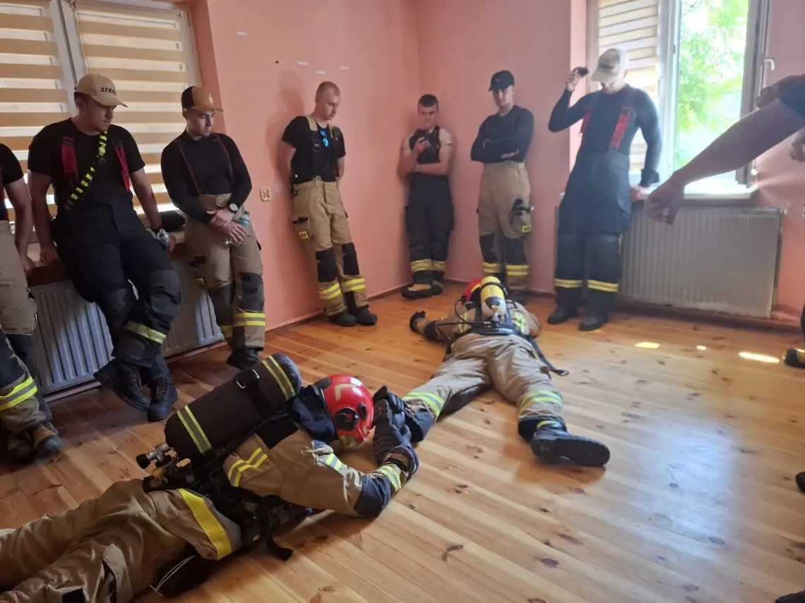 Ostatni dzień to doskonalenie rozpoznania BE-SAHF w budynku przy wsparciu kamery termowizyjną oraz szkolenie z przemieszczania się z linią wężową i technik operowania prądami gaśniczymi.