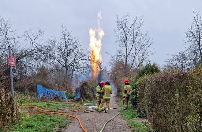 Dzisiaj nad ranem na terenie ogródków działkowych w Krakowie doszło rozszczelnienia rurociągu gazowego i zapłonu.
