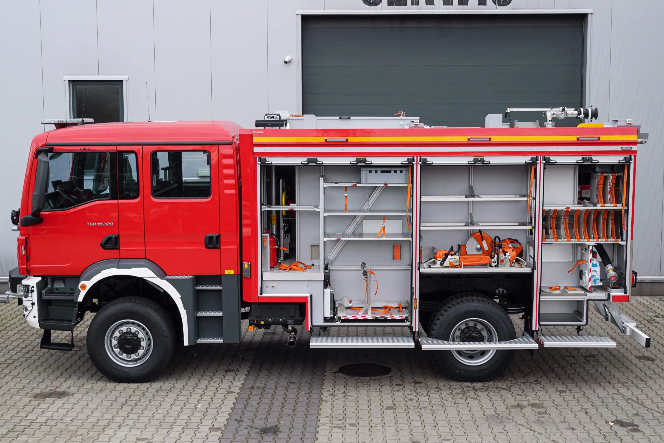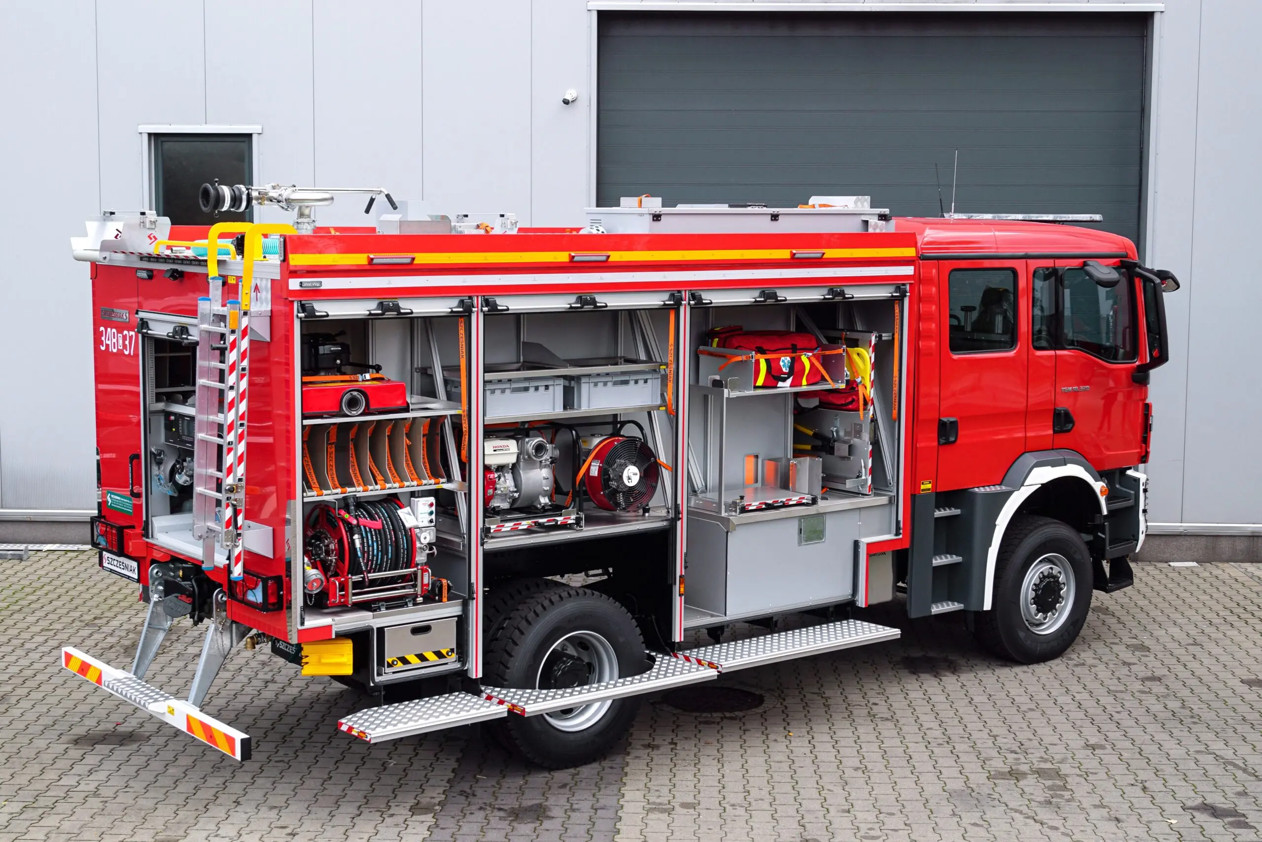 W samochodzie zastosowano innowacyjną zabudowę pożarniczą EVO. To jakość, ergonomia i funkcjonalność. To solidna konstrukcja, przemyślany układ przestrzeni ładunkowej, trwałość materiałów, niezawodność działania oraz intuicyjna obsługa.
