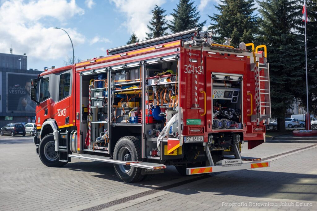 Do tego sprzęt, w tym akumulatorowy zestaw narzędzi hydraulicznych, kamera termowizyjna, sprzęt ratownictwa wysokościowego, zestaw oświetleniowy, motopompa pływająca, agregat prądotwórczy, sprzęt łączności, sprzęt burzący, drabiny, armatura wodno-pianowa, poduszki wysokociśnieniowe, sprzęt do stabilizacji, zestaw do otwierania drzwi, aparaty OUO, pilarki, zestaw ratownictwa medycznego itp.