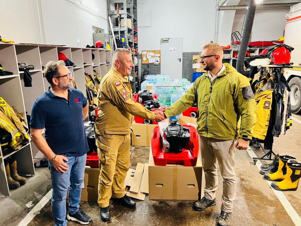 W poniedziałek firma Fire-Max przekazała motopompy pływające do jednostek OSP, które walczą ze skutkami powodzi.