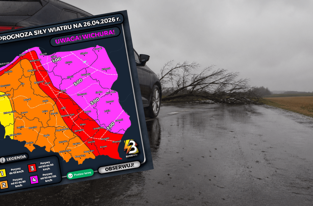 Przed nami bardzo dynamiczna noc i niedziela – informują portale pogodowe. Spodziewane są porywy wiatru do nawet 100 km/h.