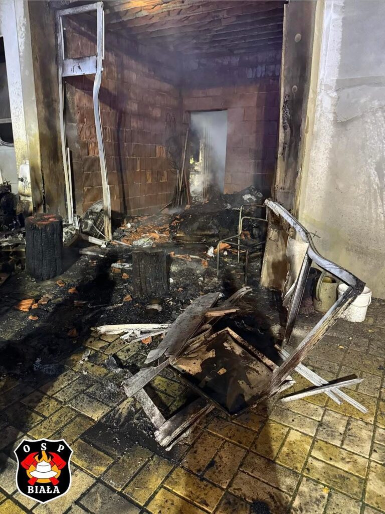 Pożar wybuchł w hali o wymiarach 13 na 13 metrów, w środku znajdowało się wyposażenie, kilka pojazdów i butle z gazem propan-butan.