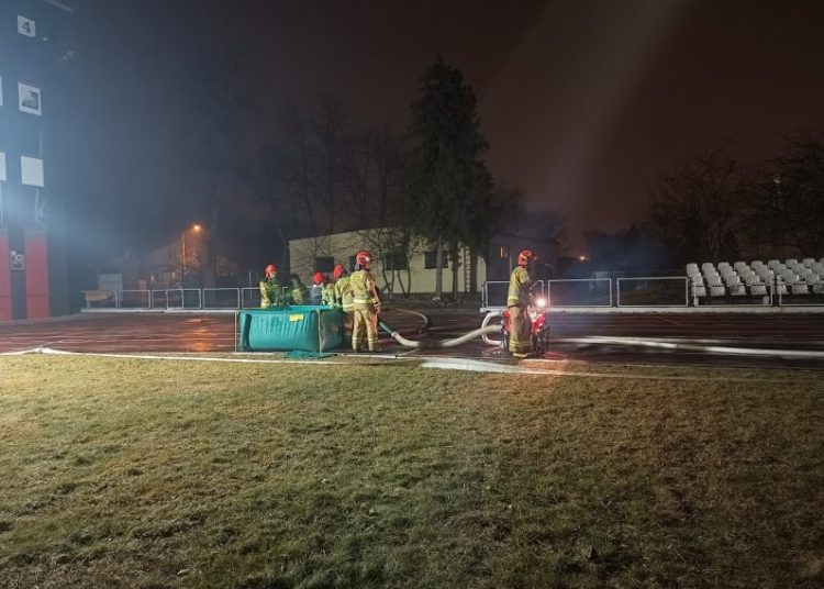 Na terenie Centralnej Szkoły PSP w Częstochowie odbyła się dziesiąta edycja nocnych ćwiczeń z dostarczania wody na duże odległości.