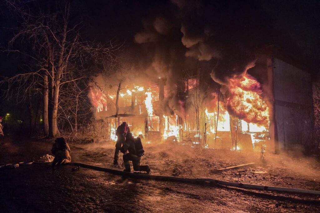 Po dojeździe pierwszych zastępów zastano w pełni rozwinięty pożar dwukondygnacyjnego budynku o stalowej konstrukcji szkieletowej. W trakcie działań gaśniczych i przeszukania pomieszczeń w obiekcie nie natrafiono na żadne osoby – informuje JRG 1 Katowice.