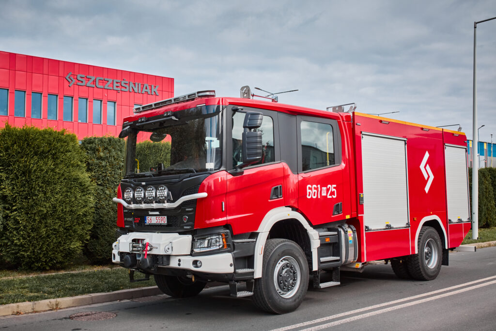 Dzisiaj w siedzibie firmy Szczęśniak Pojazdy Specjalne strażacy odebrali ciężki samochód ratowniczo – gaśniczy zabudowany na podwoziu Scania P450 4×4.