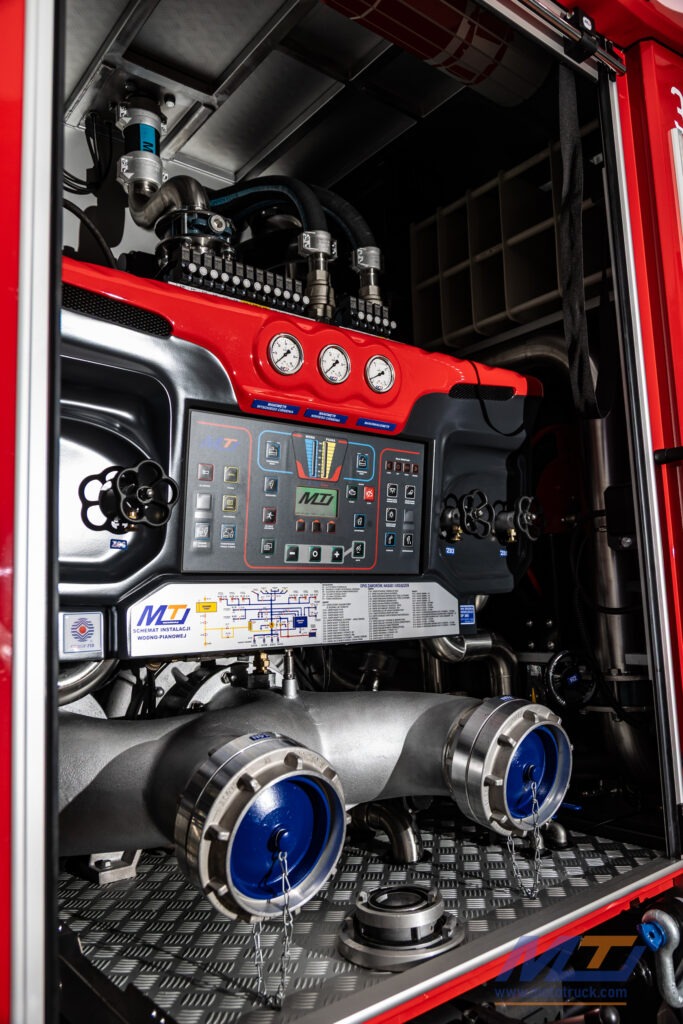 Na wyposażeniu jest zbiornik wody o pojemności 10 000 litrów, zbiornik środka pianotwórczego 1045 litrów, autopompa o wydajności 6498 litrów na minutę przy 8 barach oraz standardowo działko wodno-pianowe, linia szybkiego natarcia, wyciągarka i szereg niezbędnego sprzętu.