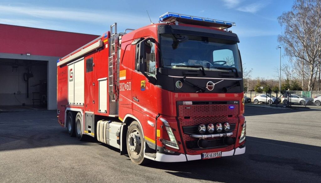 Nowy nabytek to ciężki samochód ratownictwa chemicznego zabudowany na trzyosiowym podwoziu Volvo FH500.