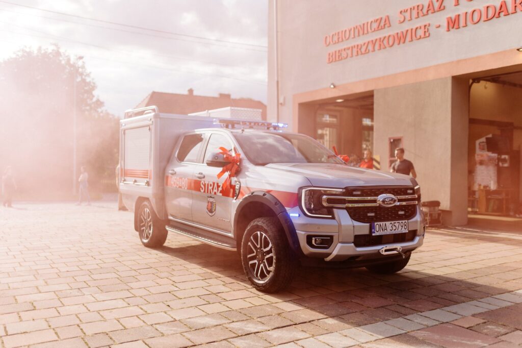 Nowy nabytek ochotników to Ford Ranger z zabudową kontenerową. Na wyposażeniu znajduje się między innymi agregat wysokociśnieniowy ze zbiornikiem wody o pojemności 200 litrów, zbiornikiem środka pianotwórczego 20 litrów i 50-metrową liną szybkiego natarcia, akumulatorowe pilarki, elektronarzędzia i najaśnica akumulatorowe od firmy Milwaukee, zestaw ratownictwa medycznego, PSP R1, składa deska ortopedyczna, podręczny sprzęt burzący, latarki i sprzęt łączności.
