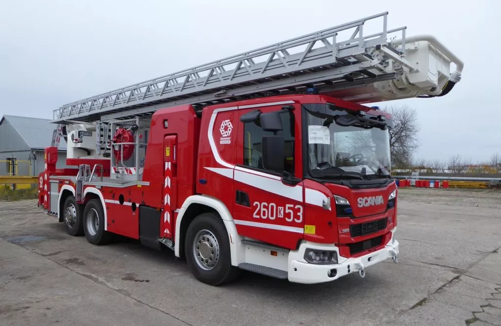 Firma Bumar-Koszalin wykonała na zamówienie Szkoły Aspirantów Państwowej Straży Pożarnej w Krakowie samochód specjalny z podnośnikiem.
