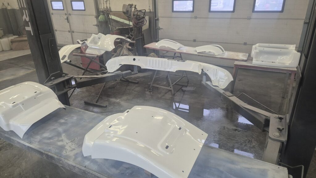 Zakres prac obejmował między innymi malowanie i piaskowanie wielu elementów, wymianę błotników, zderzaka i stopni, czyszczenie ramy, wykonanie zaprawek antykorozyjnych, modernizację instalacji elektrycznej i sygnalizacji świetlno-dźwiękowej, montaż nowych lusterek, regenerację wyciągarki, polerowanie kabiny i zabudowy, a na koniec oklejenie, która poprawia widoczność pojazdu.