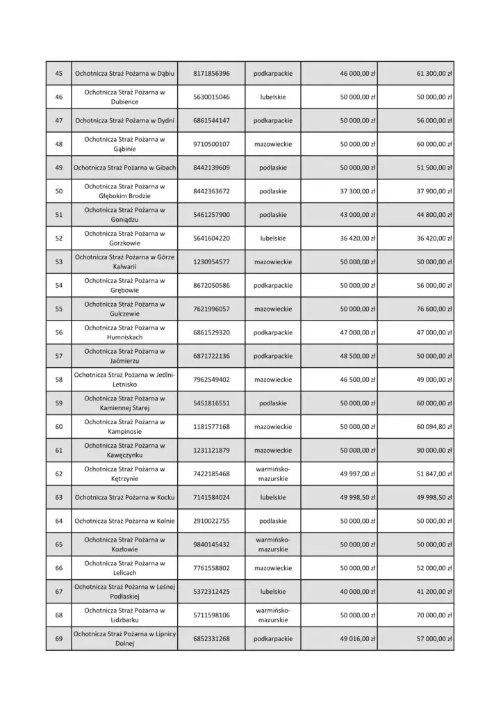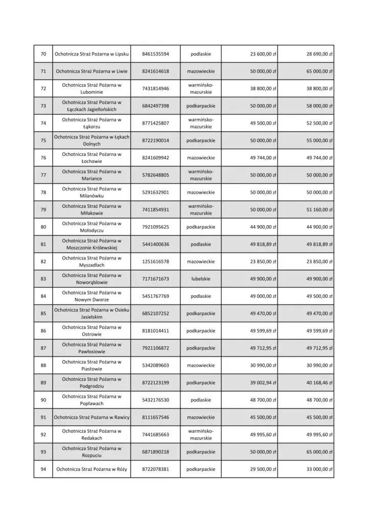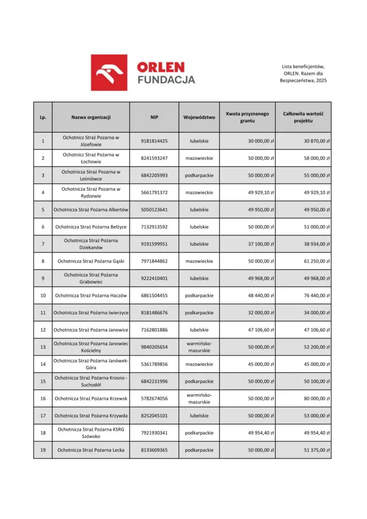 W ramach pilotażu ORLEN przeznacza 5 milionów złotych dla jednostek OSP z województw: warmińsko-mazurskiego, podlaskiego, mazowieckiego, lubelskiego i podkarpackiego. Do 8 października mogą one wnioskować o granty do 50 tys. zł. na zakup środków ochrony indywidualnej, sprzętu logistycznego, bezzałogowych statków powietrznych (np. dronów), środków łączności, czy na szkolenia.