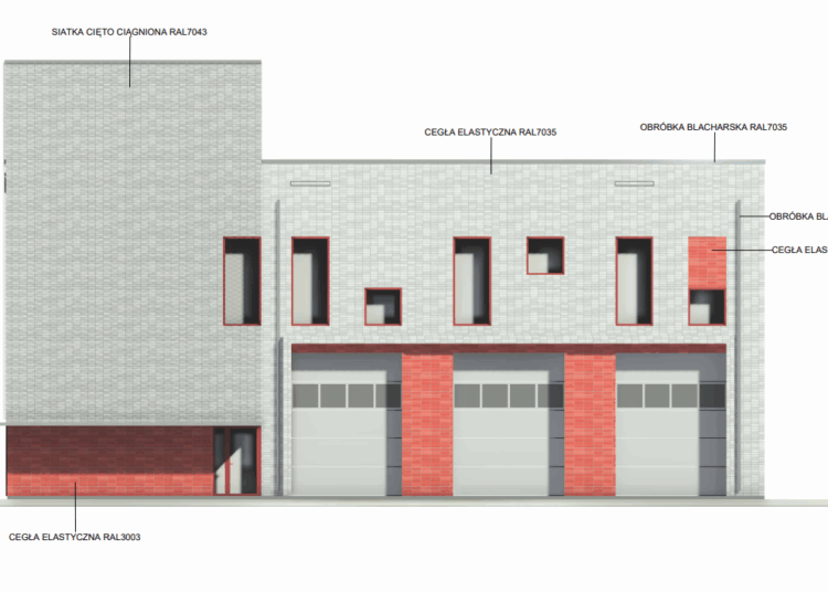 Na parterze znajdzie się garaż na trzy samochody, szatnia, kotłownia, pralnia, dyżurka i pomieszczenia pomocnicze. Natomiast na piętrze będzie sala, szatnia, toalety i pomieszczenia biurowe.