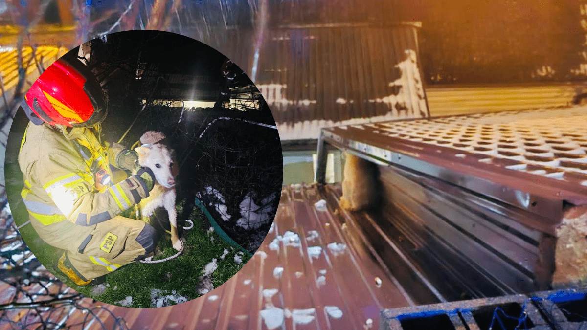 Strażacy uwolnili psa uwięzionego na dachu budynku gospodarczego. Mimo śliskich warunków akcja zakończyła się sukcesem. Dzięki numerowi na obroży szybko odnaleziono właściciela pupila – przekazała Komenda Miejska PSP w Łomży.