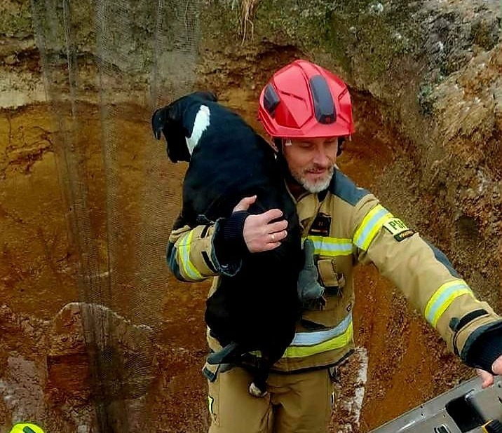 Dzisiaj strażacy interweniowali w miejscowości Gaworzyce w powiecie polkowickim, gdzie do głębokiego wykopu wpadł pies.