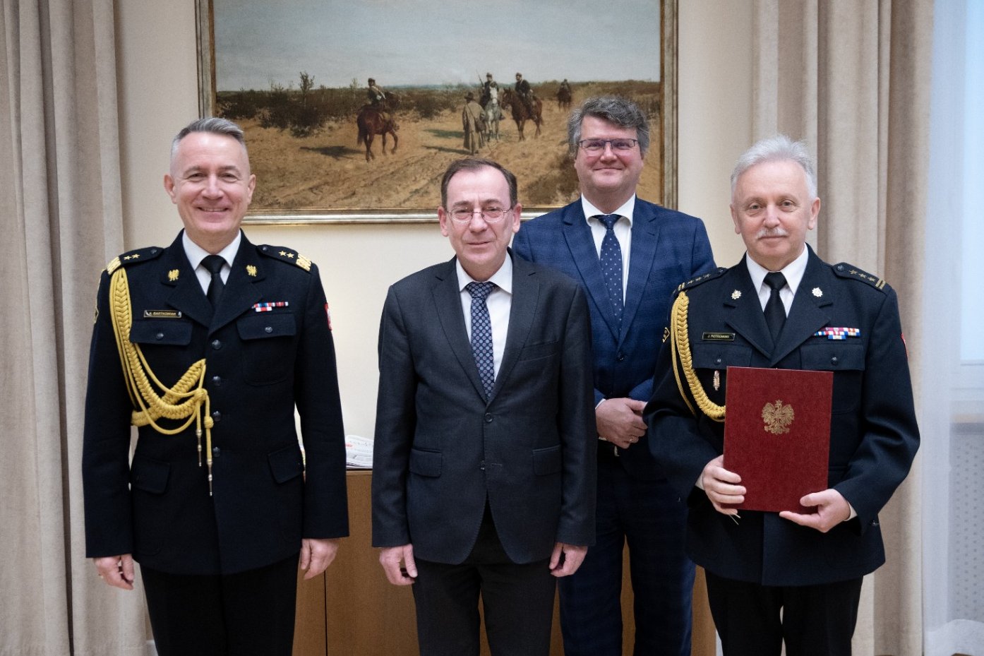 Dzisiaj szef MSWiA Mariusz Kamiński wręczył st. bryg. Jarosławowi Piotrowskiemu akt powołania na stanowisko Mazowieckiego Komendanta Wojewódzkiego PSP.