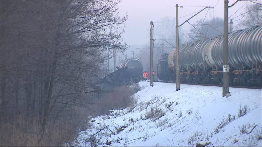 Służby później doprecyzowały, że wykoleiło się osiem wagonów, w których znajduje się olej napędowy. Sześć z nich zjechało z nasypu, dwa pozostały na torowisku. Nie stwierdzono wycieków.